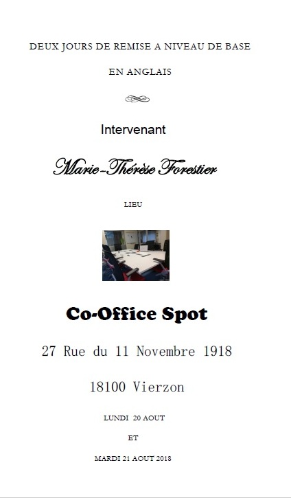 VOS COURS D'ANGLAIS DANS LE CENTRE DE LA FRANCE